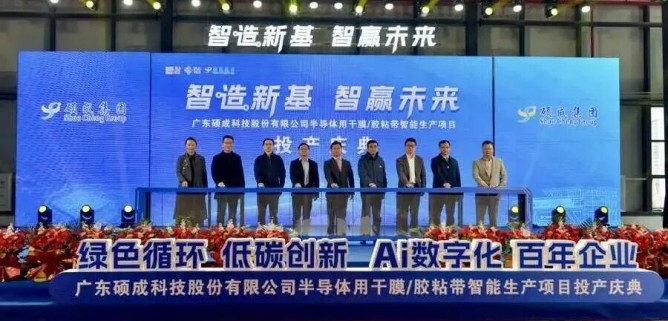 广东硕成科技股份有限公司三厂区“半导体干膜/胶粘带智能生产项目”投产庆典在韶关乳源瑶族自治县隆重举行。