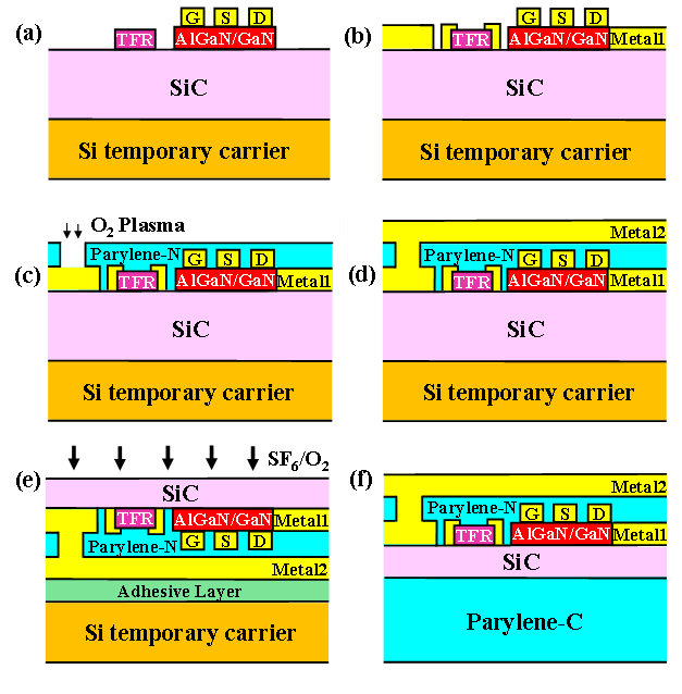 图2:异质集成柔性GaN射频功率放大器制备工艺