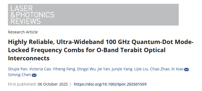 中国科学院半导体研究所陈思铭研究员团队联合湖南汇思光电科技有限公司、深圳技术大学和国家信息光电子创新中心,在高速光通信量子点锁模光频梳的研究中取得新突破。