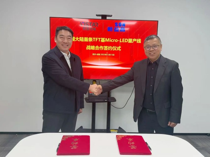 玻璃基Micro-LED(COG-基于TFT背板的玻璃基 Micro-LED 技术)领军企业辰显光电与高端半导体装备制造商新益昌正式签订战略合作框架协议。